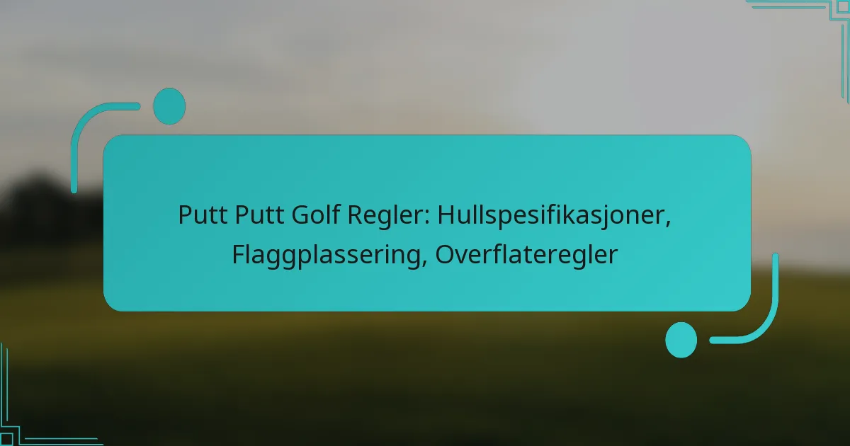 Putt-putt golf har spesifikke hullspesifikasjoner som skaper et enhetlig spillmiljø, inkludert standardstørrelser og ulike hindringer for å øke utfordringen i spillet. I tillegg er plasseringen av flagg avgjørende for å forbedre spillopplevelsen, noe som krever nøye vurdering av synlighet og vanskelighetsgrad. Overfladereglene dikterer materialene og vedlikeholdspraksisene som er nødvendige for å sikre rettferdig spill og en hyggelig opplevelse for alle deltakere.